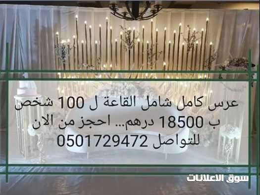 حفلة زفاف 18500 ل 100 شخص شاملة القاعه و ليلتين للعرسان