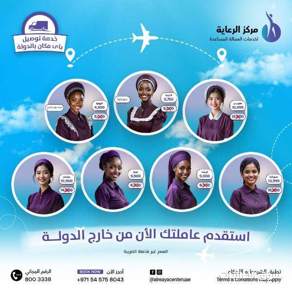 نوفر العديد من المهن مثل مربيات طباخات سائقات مدرسات عاملات من مختلف الجنسيات الفلبين و اثيوبيا واندونيسيا وكينيا واوغندا ومينمار وسيرلانكا