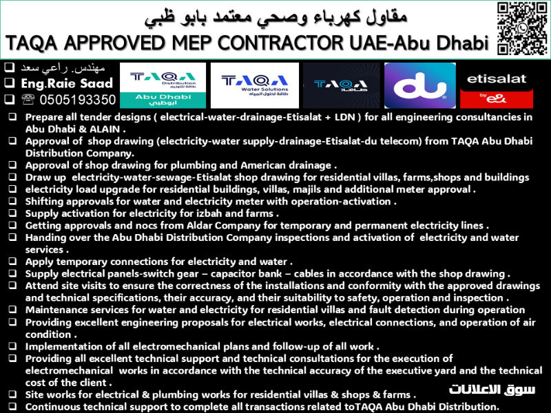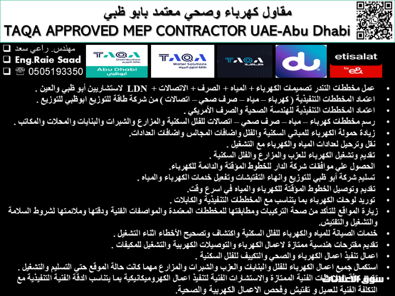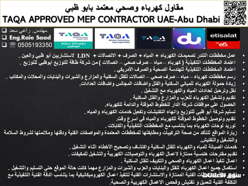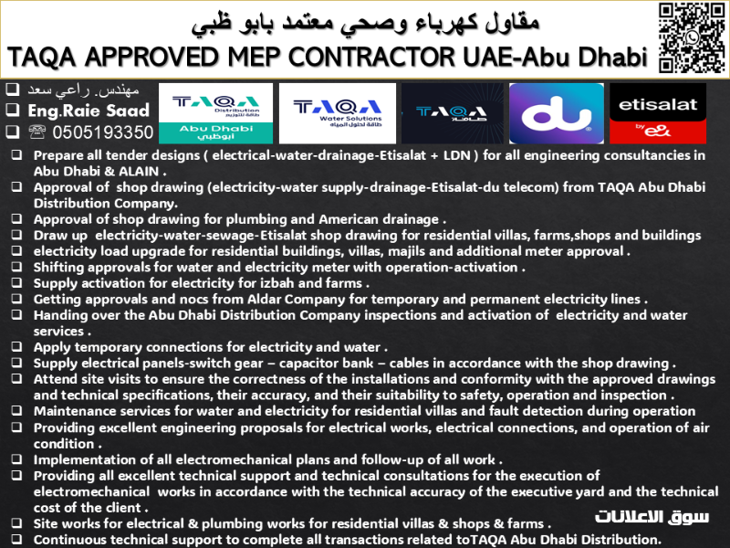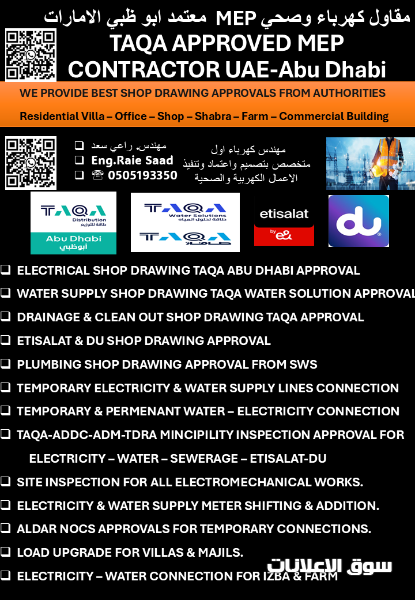 تقارير دوريةADDC certified MEP contractor Specializing in electrical and sanitary designs approvals and inspections for Abu Dhabi and Al Ain Fast reliable and competitively priced services for villas buildings and farms Contact us today for top tier electromechanicalsolutionsالسلام عليكم