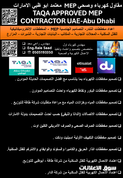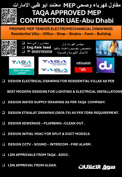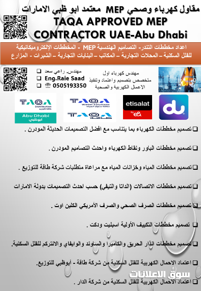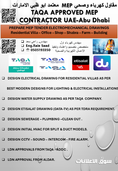 مقاول كهرباء معتمد طاقة للتوزيع أبوظبي لأفضل تصاميم واعتماد المخططات التنفيذية الشوب دروينج للكهرباء والاتصالات والمياه والكلين أوت والصرف الصحي بأسرع وقت وأفضل تصميم هندسي والتسليمات النهائية للفللمقاول كهرباء متميز في أبوظبي